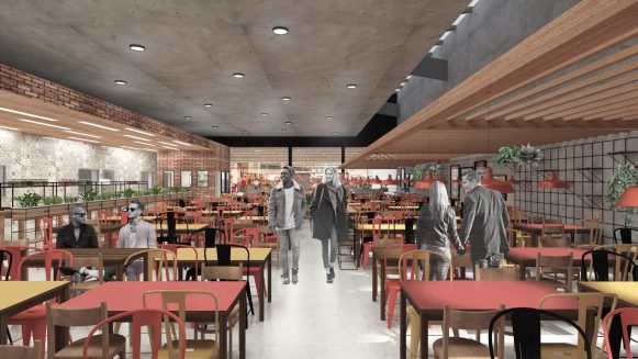PROJETO DE ARQUITETURA E INTERIORES Projeto de arquitetura e interiores para um restaurante localizado em um shopping de São José dos Campos – SP. Dados da Obra: Projeto: 2018; Obra: Em andamento; Área de Intervenção: 587,03m². Autores: Frederico Zanelato e Sergio Faraulo.