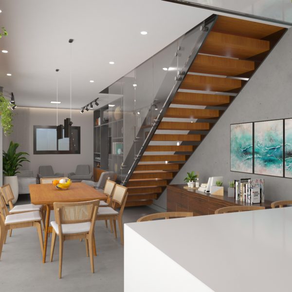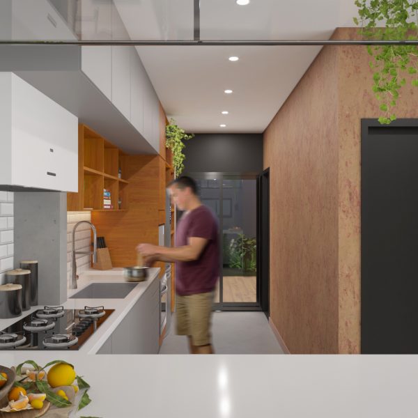 Projeto de arquitetura e interiores para a reforma e ampliação de uma Residência unifamiliar em de lote 5x25m localizada em Mogi das Cruzes – SP.