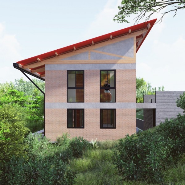 A casa foi dividida em dois níveis para aproveitar o alto desnível do terreno sem precisar fazer grandes movimentações de terra, ocupando uma fração mínima do lote e preservando a grande maioria das arvores existentes. A residência se abre para a natureza nativa dando a impressão de se estar em uma grande casa na árvore, a área social se integra com uma praça privativa/varanda suspensa que se joga para o meio desta mata tendo um grande banco que circunda este espaço de convivência e de geração de momentos, de memórias.