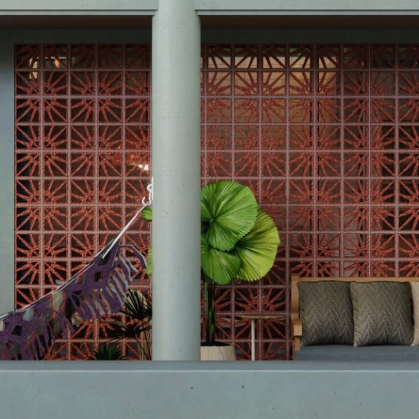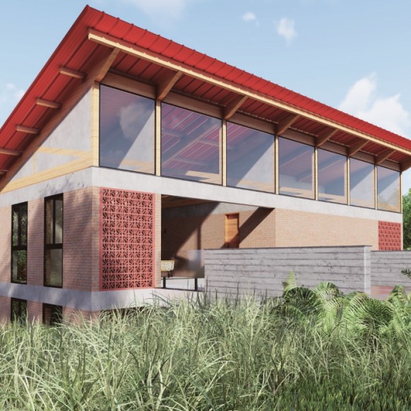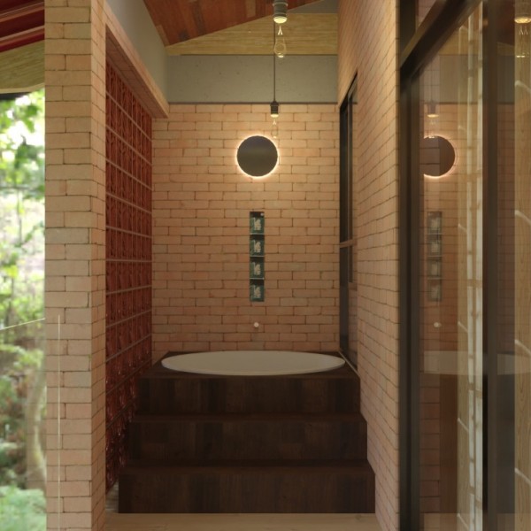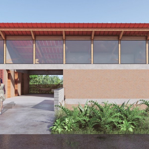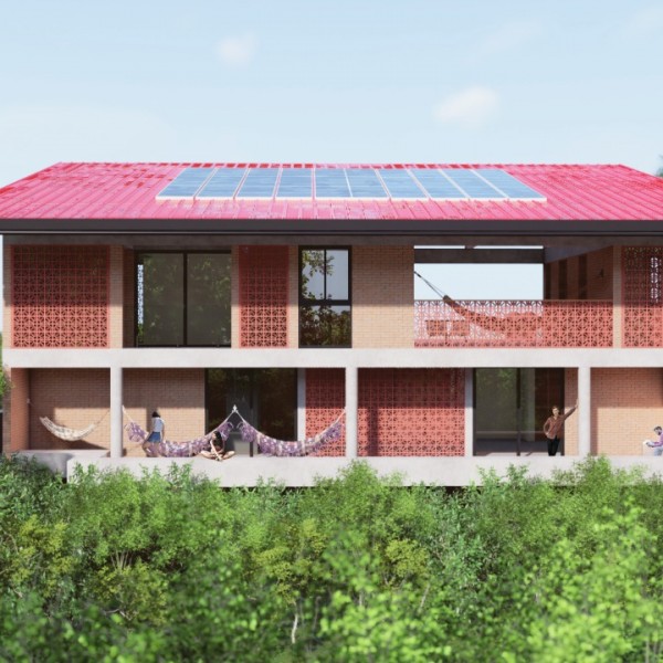 A casa também reutiliza a agua da chuva e capta a energia solar, além de se resfriar naturalmente pela ventilação cruzada e pelos grandes vãos protegidos pelos cobogós.