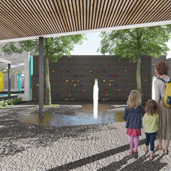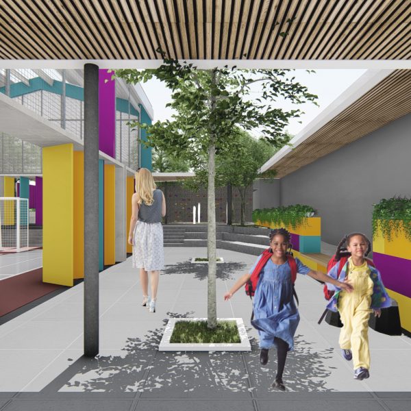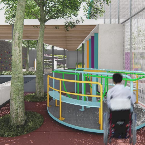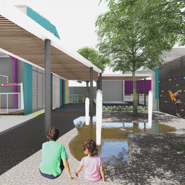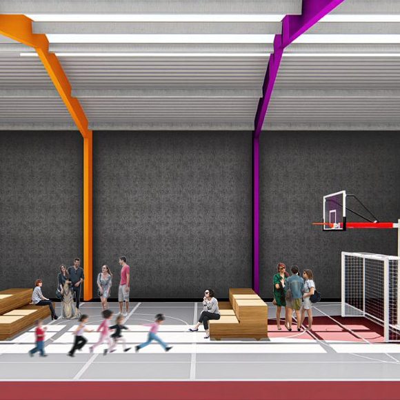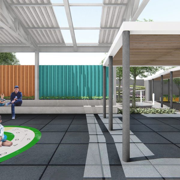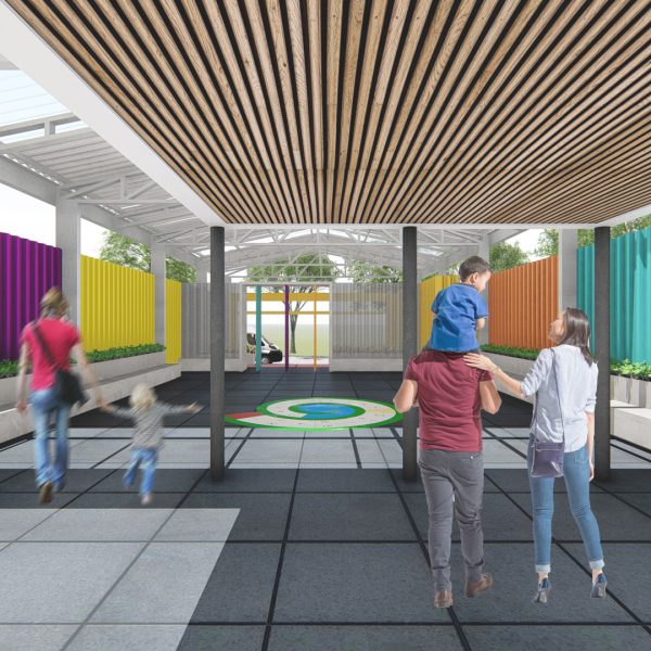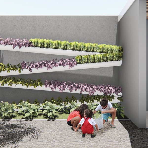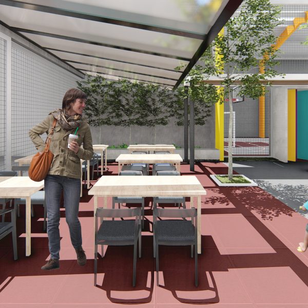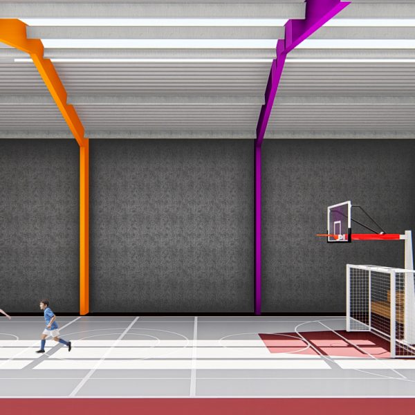 Projeto de arquitetura para um pátio aberto com quadra poliesportiva, áreas recreativas e de estar, além de retrofit de cobertura metálica para a nova Unidade Harmonia do Colégio Oswald no bairro da Vila Madalena em São Paulo – SP.
