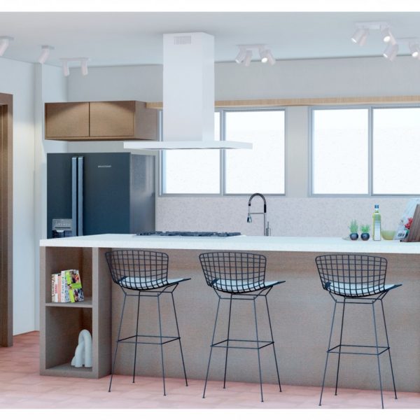 Projeto de arquitetura e interiores para a reforma e modernização de uma cozinha residencial localizada no bairro da Vila Oliveira em Mogi das Cruzes – SP.