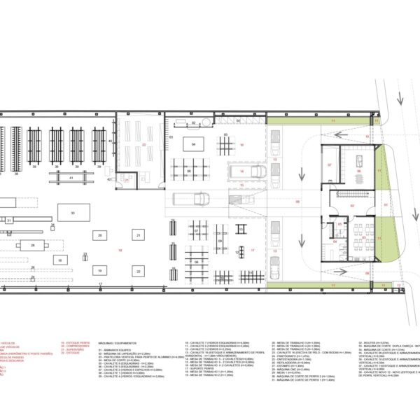 Projeto de arquitetura e interiores para a reforma e ampliação de uma Fábrica de Esquadrias localizada em Mogi das Cruzes – SP.
