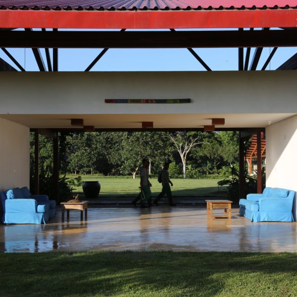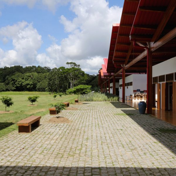 O objetivo da escolha deste material era de reduzir a interferência da arquitetura na paisagem e inseri-la na linguagem construtiva local aliando a tradição com a inovação.