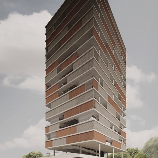 Juntos projetam no terreno menos de 50% de sua área, por consequência aumentou o gabarito de altura. Deste modo é possível manter a maior parte das áreas verdes existentes e criar um respiro no entorno do edifício, e a parte da área verde que o projeto retira do terreno, foi devolvido em forma de praça no pavimento de entrada do edifício.