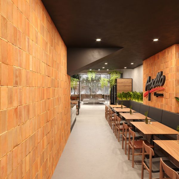PROJETO DE ARQUITETURA DE INTERIORES Projeto de arquitetura e interiores para o segundo restaurante do Apollo Grill localizado em Suzano – SP. Dados da Obra: Projeto: 2023; Obra: 2024; Área de Intervenção: 245,00m². Autor: Sergio Faraulo.